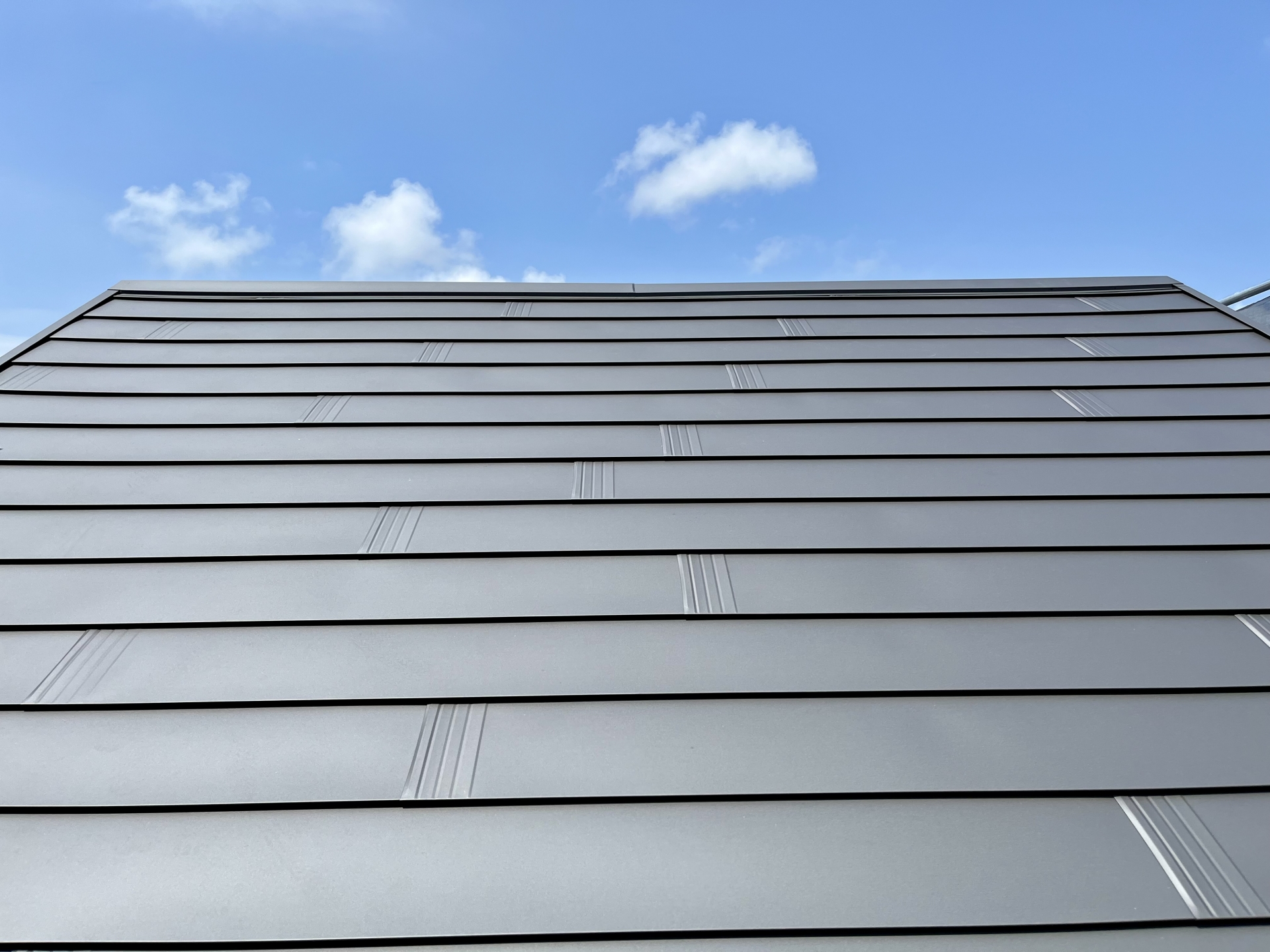金属屋根材(ガルバリウム鋼板)。耐久性、断熱性、防水性に優れた高性能材。軽量で美観にも優れています。